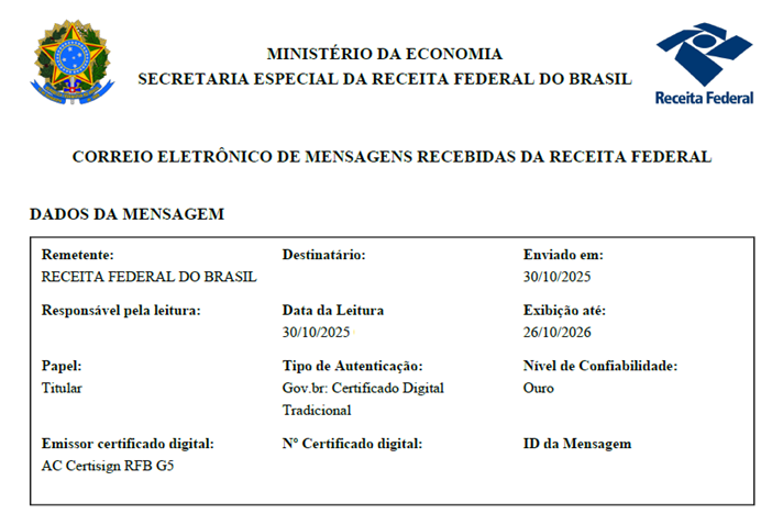 O Governo Federal, por meio da Receita Federal, enviou notificação a uma empresa com o seguinte teor: